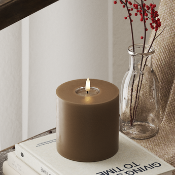 Dette smukke LED bloklys i Karamel er skabt med vores særlige Wetlook™ overflade, der får det til at ligne et ægte stearinlys. Overfladen ligner præcis toppen af et stearinlys der har været tændt, hvilket giver en helt særlig autentisk følelse. Med en højde på 400 cm passer det perfekt ind i de fleste hjem, hvor det spreder hygge og varme med sit naturlige udseende.