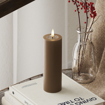 Dette elegante LED bloklys i Karamel tilbyder en virkelighedstro 'Real Flame'-effekt, der er så naturtro som et ægte stearinlys. Med en højde på 15 cm og en diameter på 5 cm er hvert LED bloklys omhyggeligt fremstillet i stearin & resin, udstyret med en livagtig 3D-flamme og en unik belægning af resin i toppen. Denne særlige kombination skaber ikke kun en autentisk følelse, men giver også det karakteristiske 'wet look', der efterligner smeltet stearin perfekt.