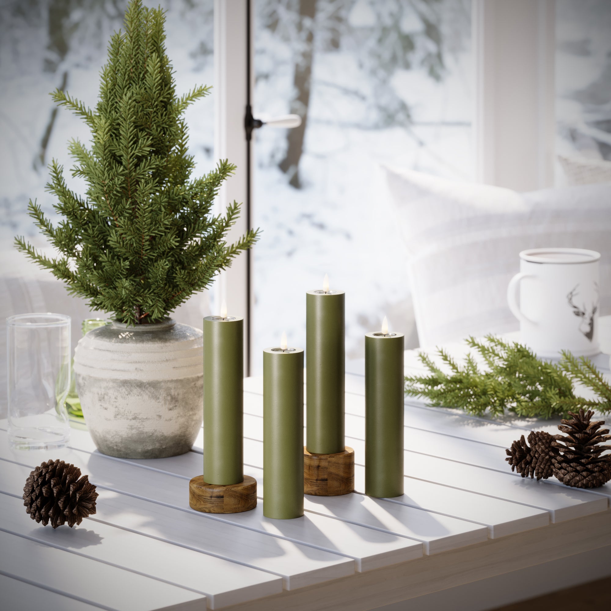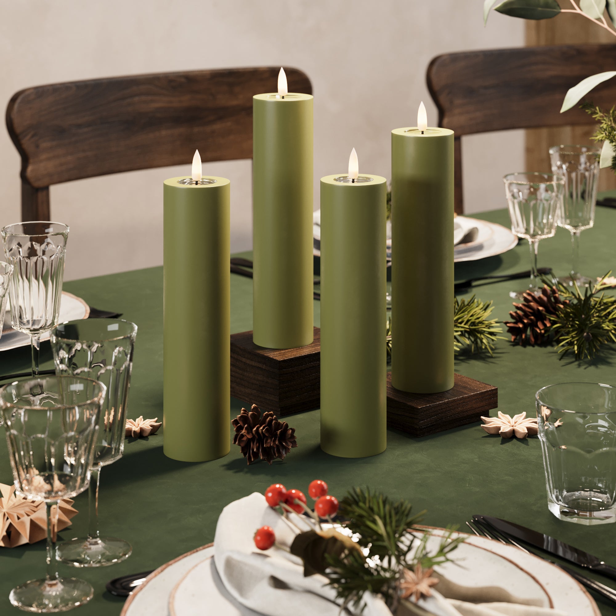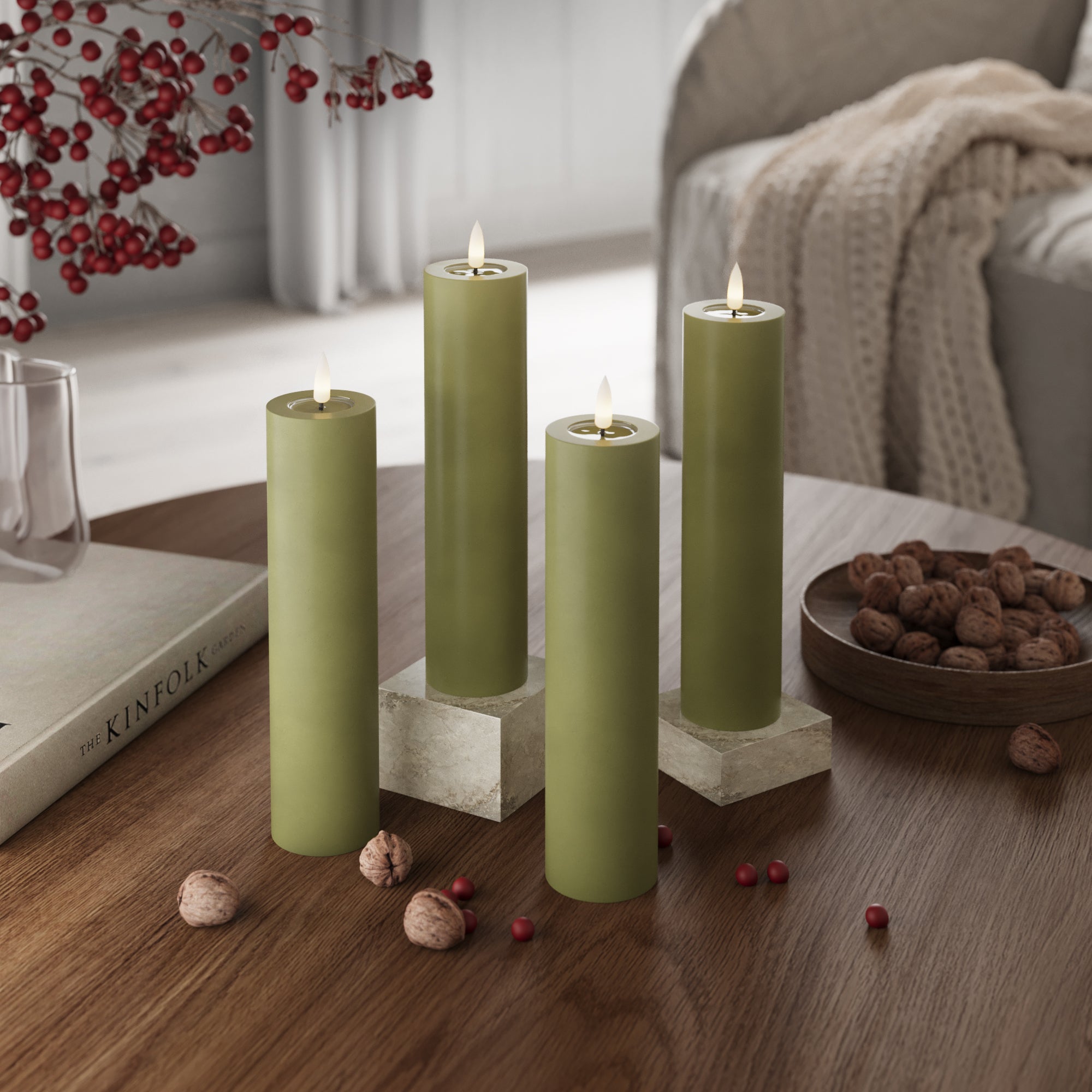 LED-Blockkerzen Ø 5 x 20 cm Olivgrün – 4 Stück
