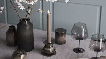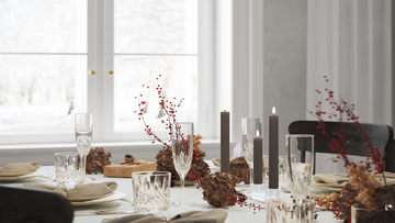 Kronelys giver højde i borddækningen. Stil flere på række for et gennemført udtryk med ro og rytme.