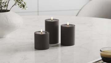 Die spezielle Harzoberseite dieser einzigartigen Blockkerzen erzeugt unseren charakteristischen Wetlook™-Effekt, der die Kerzen wie echtes geschmolzenes Stearin aussehen lässt. In Kombination mit unserer 3D Real Flame-Technologie erhalten Sie ein erstaunlich naturgetreues Lichterlebnis.