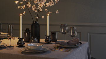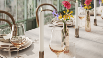 Kronelys giver højde i borddækningen. Stil flere på række for et gennemført udtryk med ro og rytme.