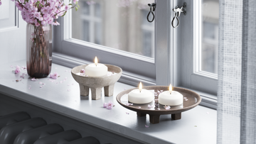 Flydelys er oplagte i skåle og fade med vand. Det giver en enkel stemning – både inde og ude.