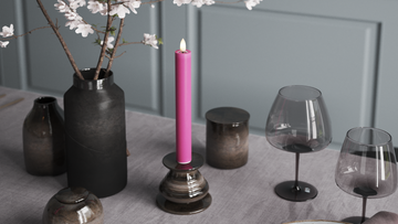 This elegant LED Dinner candle in Magenta Offers a real-life 'real flame' effect that is as lifelike as a real candle. With a height of 15 cm and a diameter of 2 cm each is LED Dinner candle Carefully made of candles & resin, equipped with a lifelike 3D flame and a unique coating of resin at the top. This particular combination not only creates an authentic feeling, but also gives the distinctive 'wet look' that mimic melted candles perfectly.
