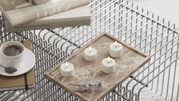 Brug LED stearinlys som en rolig detalje i indretningen – både alene og i en lille gruppe.