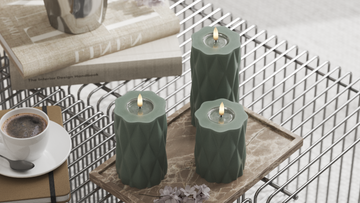 Dette elegante LED Harlequin i Salviegrønn Tilbyr en virkelig 'ekte flamme' effekt som er like naturtro som et ekte stearinlys. Med en høyde på 15 cm og en diameter på 7,5 cm hver er LED Harlequin Nøye laget av stearinlys og harpiks, utstyrt med en naturtro 3D -flamme og et unikt belegg av harpiks øverst. Denne spesielle kombinasjonen skaper ikke bare en autentisk følelse, men gir også det særegne "våte utseendet" som etterligner smeltet lys perfekt.