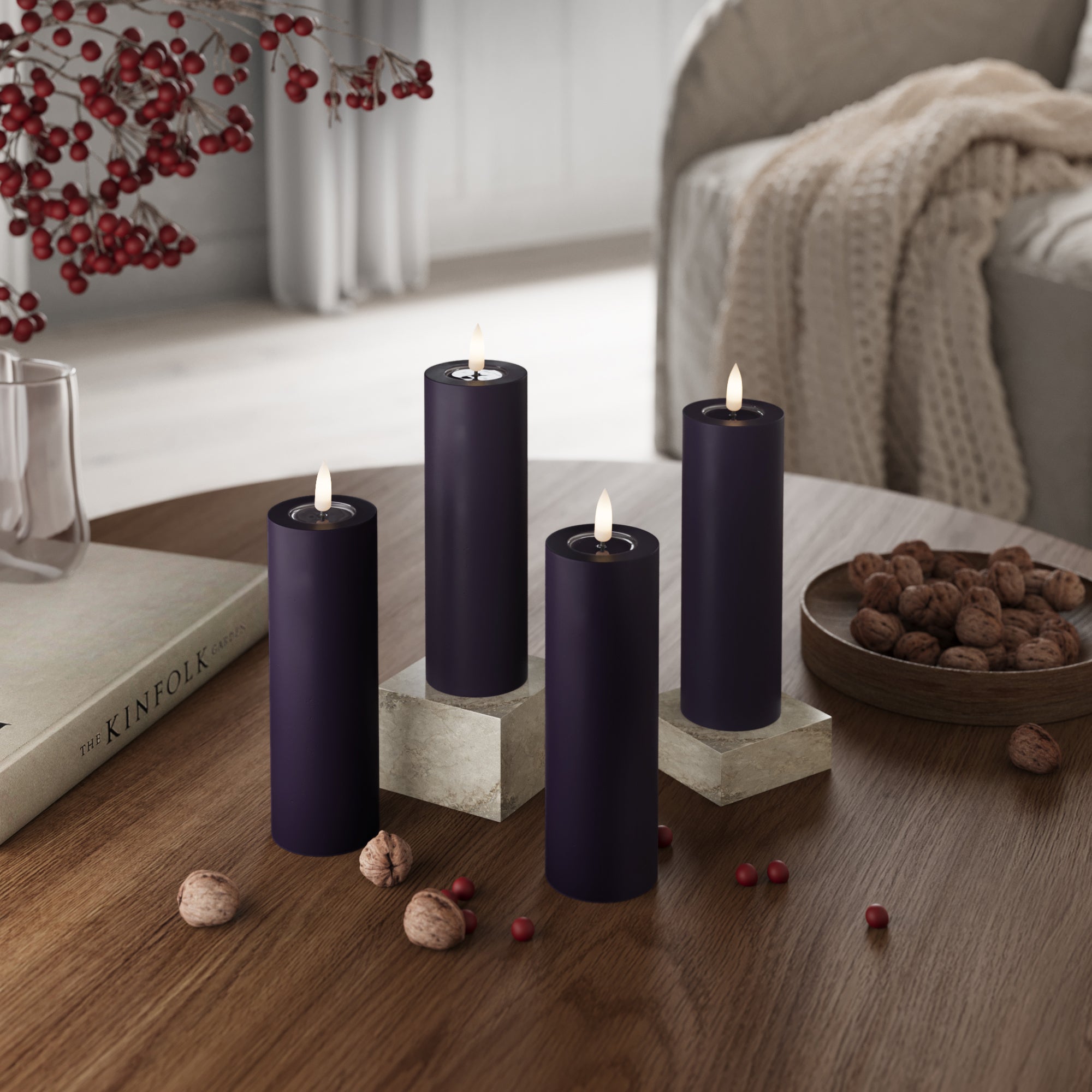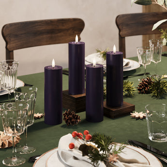 LED Stompkaarsen Ø 5 x 15 cm Donkerpaars - 4 pc's
