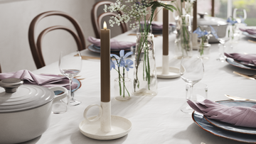 Kronelys fungerer særligt godt i enkle stager på spisebordet eller skænken, når du vil have et klassisk og roligt udtryk.