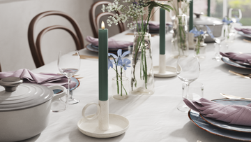Kronelys er oplagte til middagsbordet i slanke lysestager, hvor de giver et let og elegant udtryk – både til hverdag og når der dækkes op til gæster.