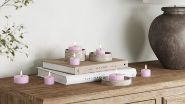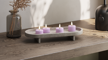 LED fyrfadslys i farven lavendel.